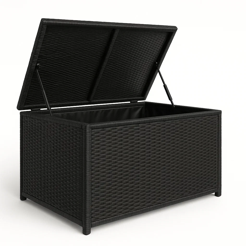 Baúl de almacenamiento de mimbre sintético negro para exterior 120x60x55 cm