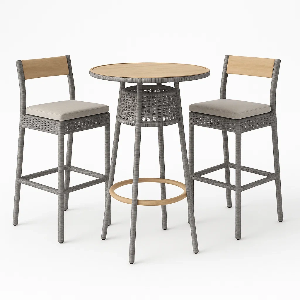 - Material: Estructura de aluminio, ratán PE, tablero MDF
